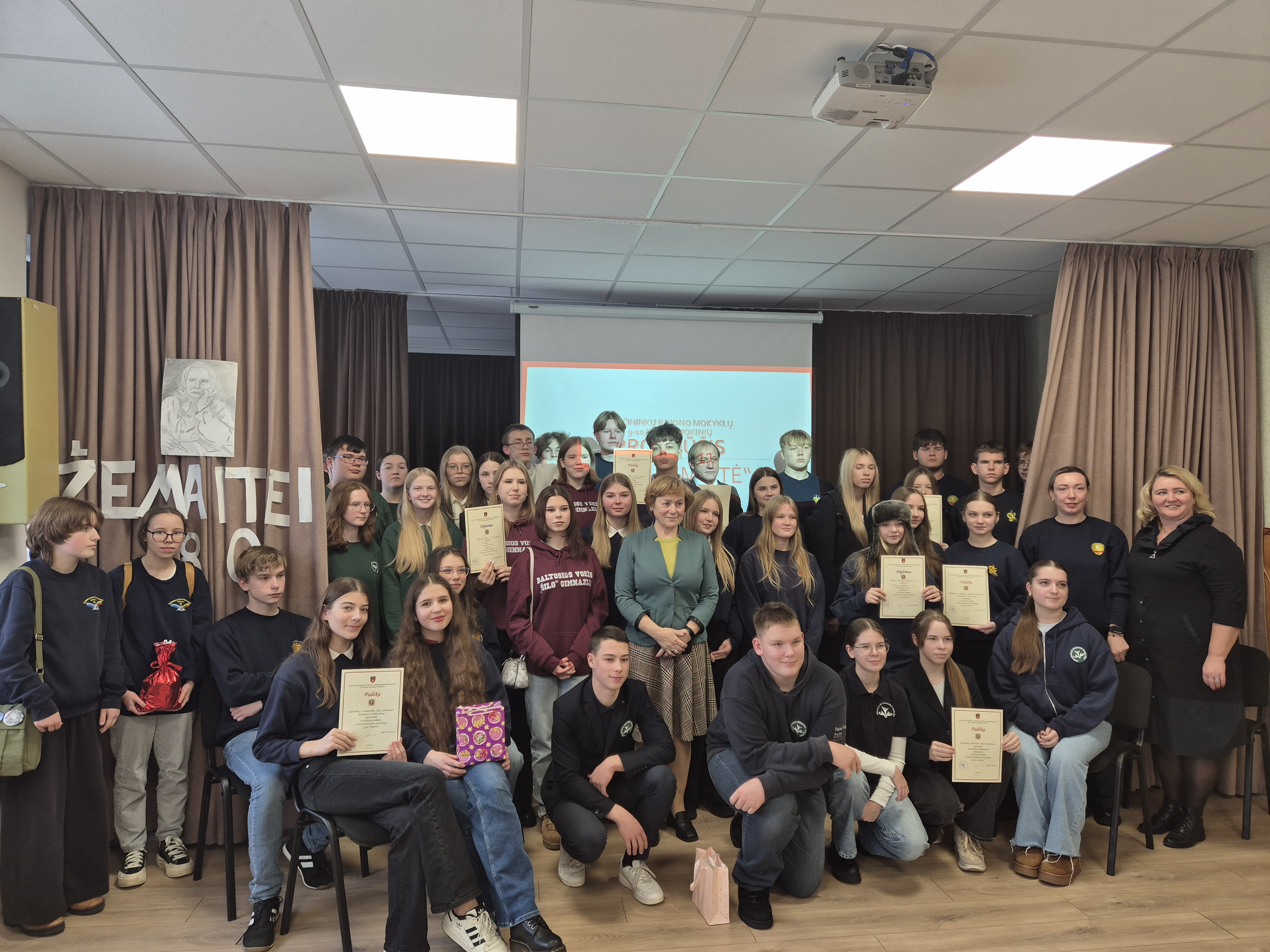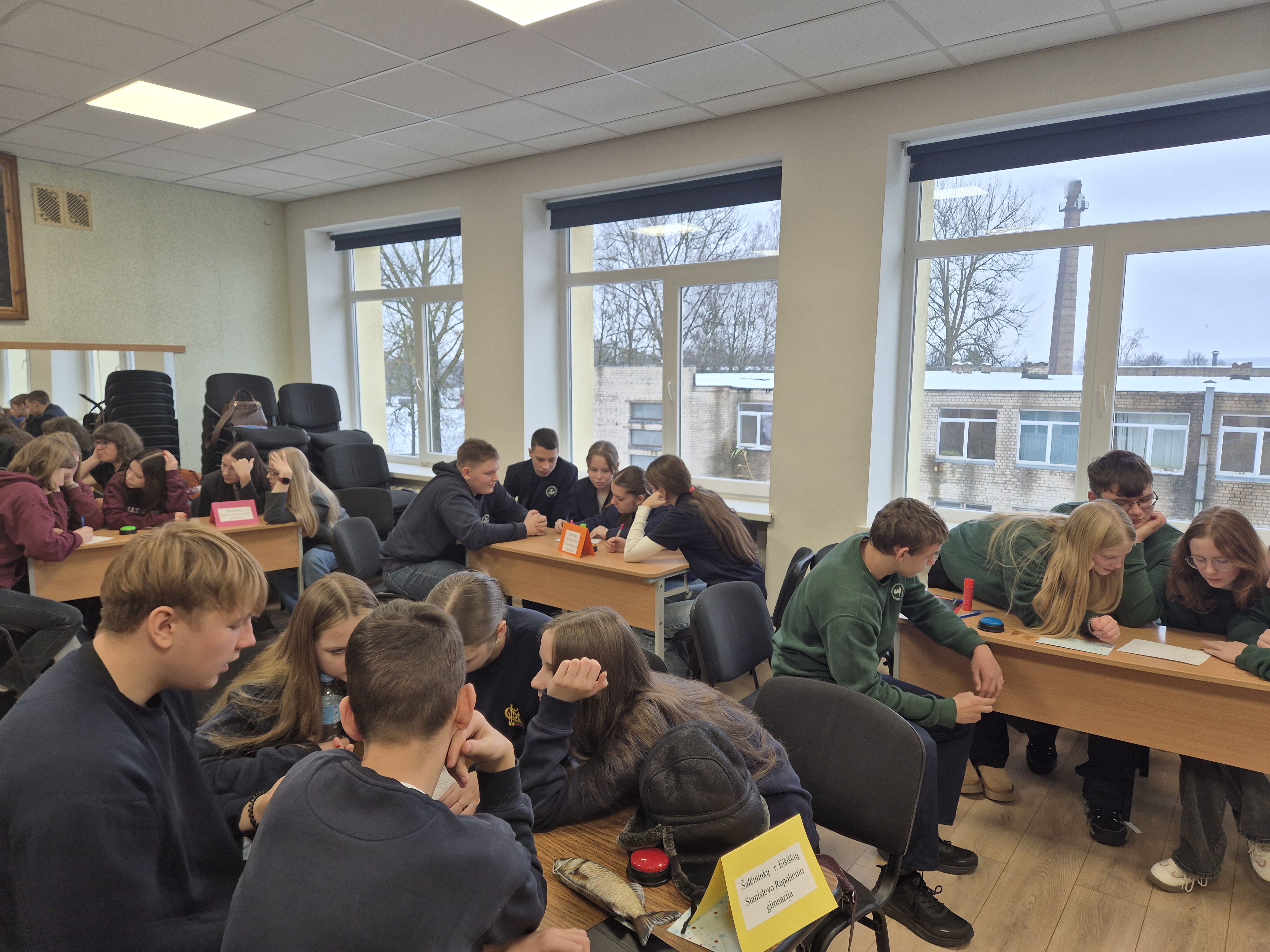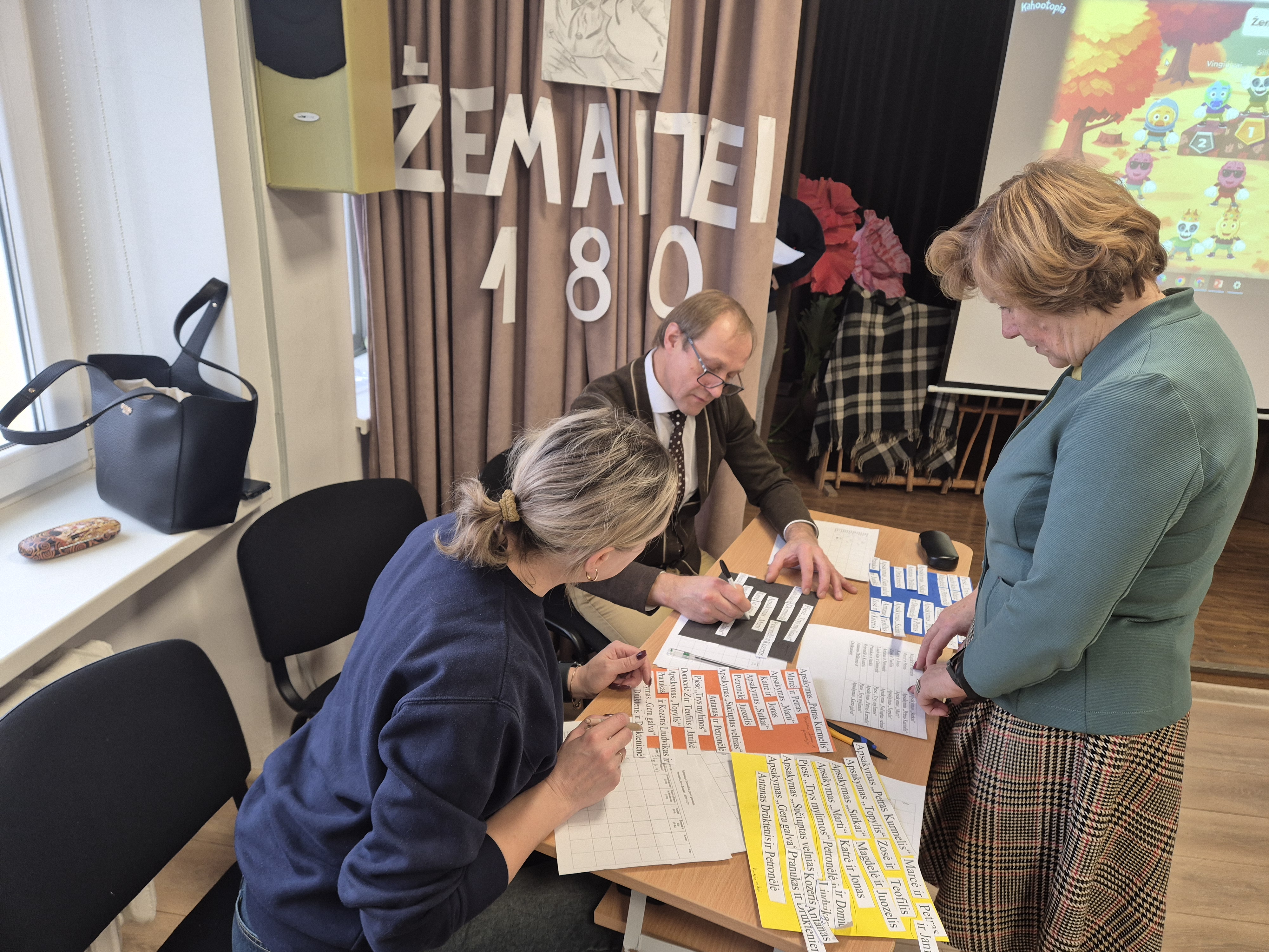 Į protmūšį nepabūgę slidokų kelių atskubėjo mokinių iš Jašiūnų „Aušros“, Šalčininkų Lietuvos tūkstantmečio, „Santarvės“, Eišiškių Stanislovo Rapolionio, Baltosios Vokės „Šilo“ ir Elizos Ožeškovos, Dieveniškių Adomo Mickevičiaus ir „Ryto“ gimnazijų komandos, lydimos juos ruošusių mokytojų. Pasveikintos „Ryto“ gimnazijos direktorės Lolitos Mikalauskienės komandos šmaikščiai prisistatė ir nusiteikė rimtam darbui. O užduočių būta visokių: klausimai iš rašytojos gvenimo, kūrybos, gyvenamojo laikmečio. Mokiniai plušo ir rašydami, ir Kahoot‘e užduotis atlikdami, ir Žemaitės vartotus frazeologizmus narpliodami, ir šmaikščius tekstus kurdami. Visų nuotaika buvo puiki.