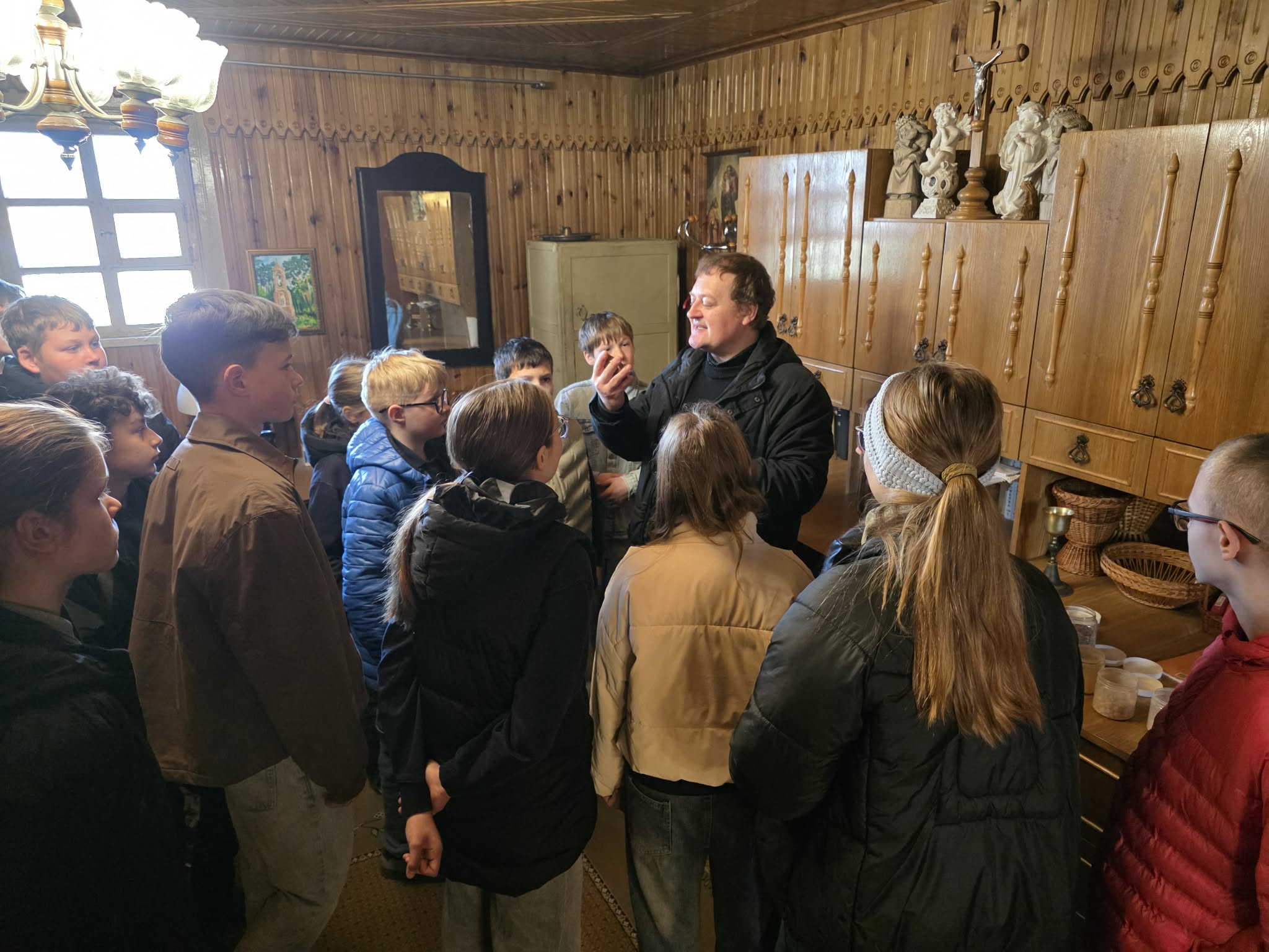 Balandžio 15 dieną 5-7 klasių mokiniams tikybos ir istorijos pamoka vyko Dieveniškių Švč. Mergelės Marijos Rožančinės bažnyčioje. Kunigas Renatas Švenčionis mokiniams papasakojo bažnyčios istoriją, parodė bažnytines relikvijas, patalpas, supažindino su tradicijomis ir taisyklėmis. Dėkojame už nuoširdų ir šiltą priėmimą.