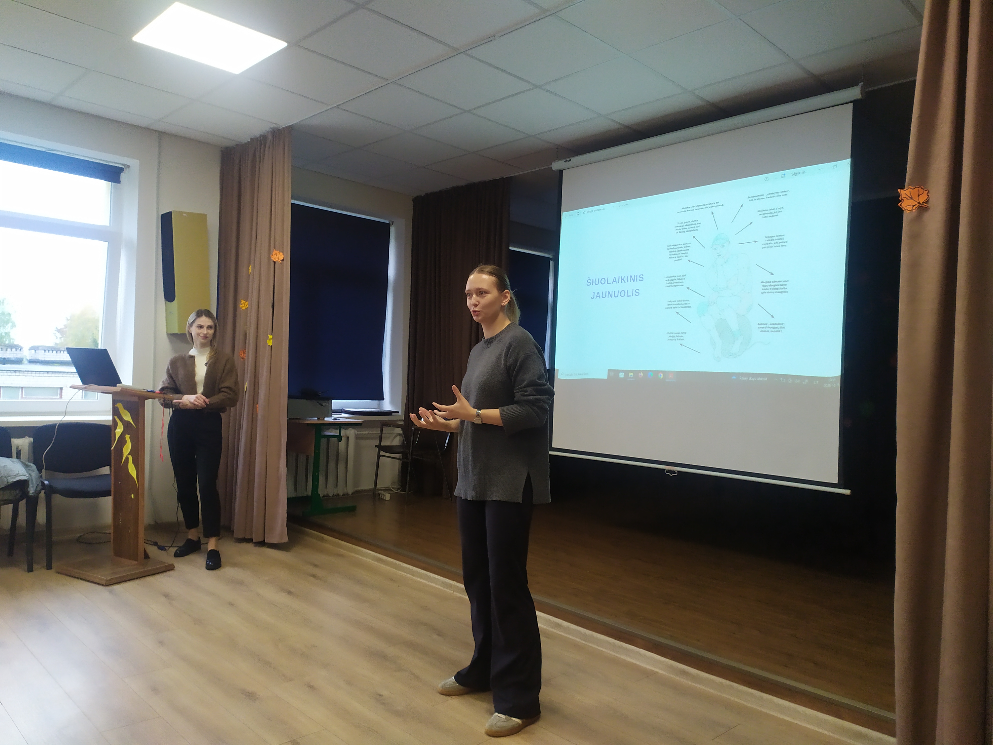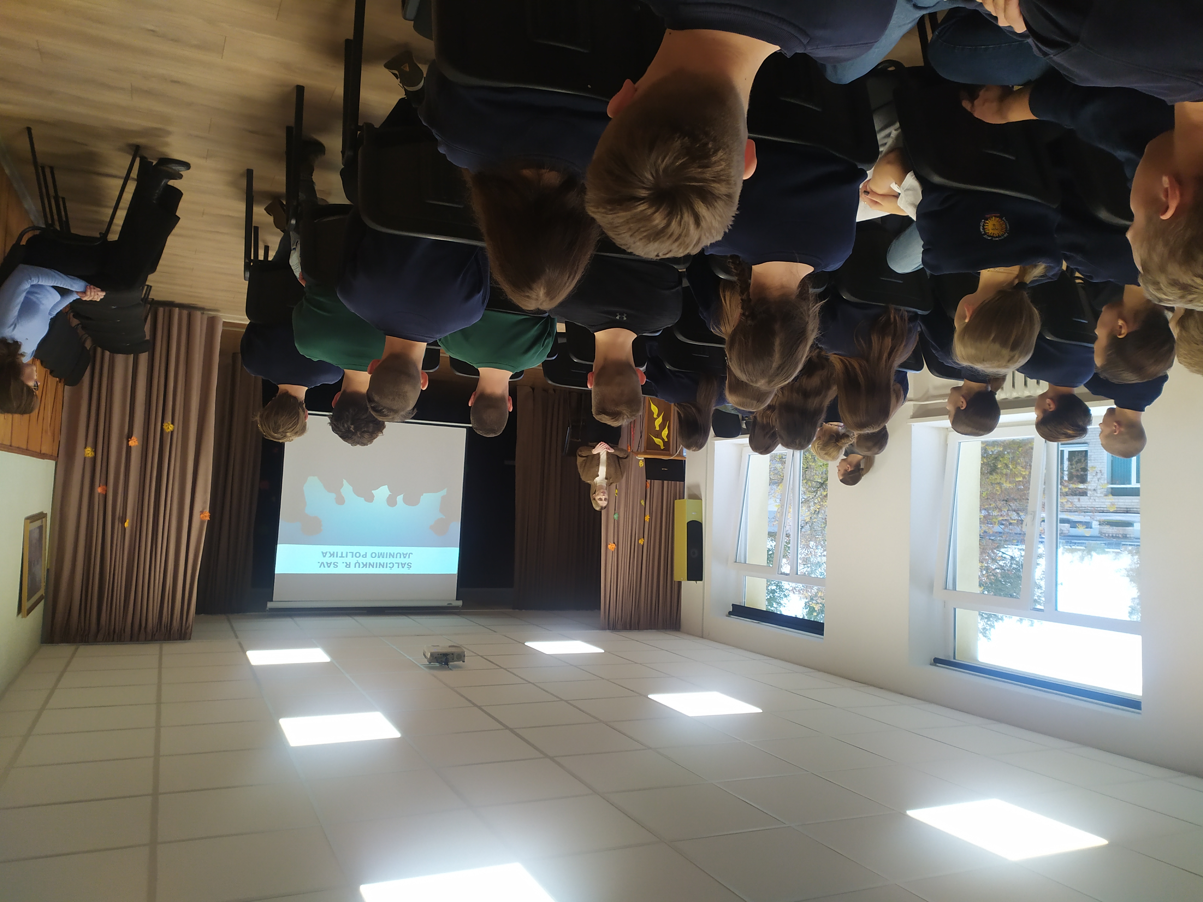 Šiandien, spalio 14 d. gimnazistai susitiko su mūsų rajono savivaldybės atstovėmis. Šalčininkų rajono savivaldybės administracijos Jaunimo reikalų koordinatorė Justyna Balion supažindino gimnazistus su jaunimo politika, JP įrankiais, pristatė siūlomas naujas galimybes. Šalčininkų atviros jaunimo erdvės jaunimo darbuotoja Viktorija Kolendo pristatė projektą „Jungtys“.