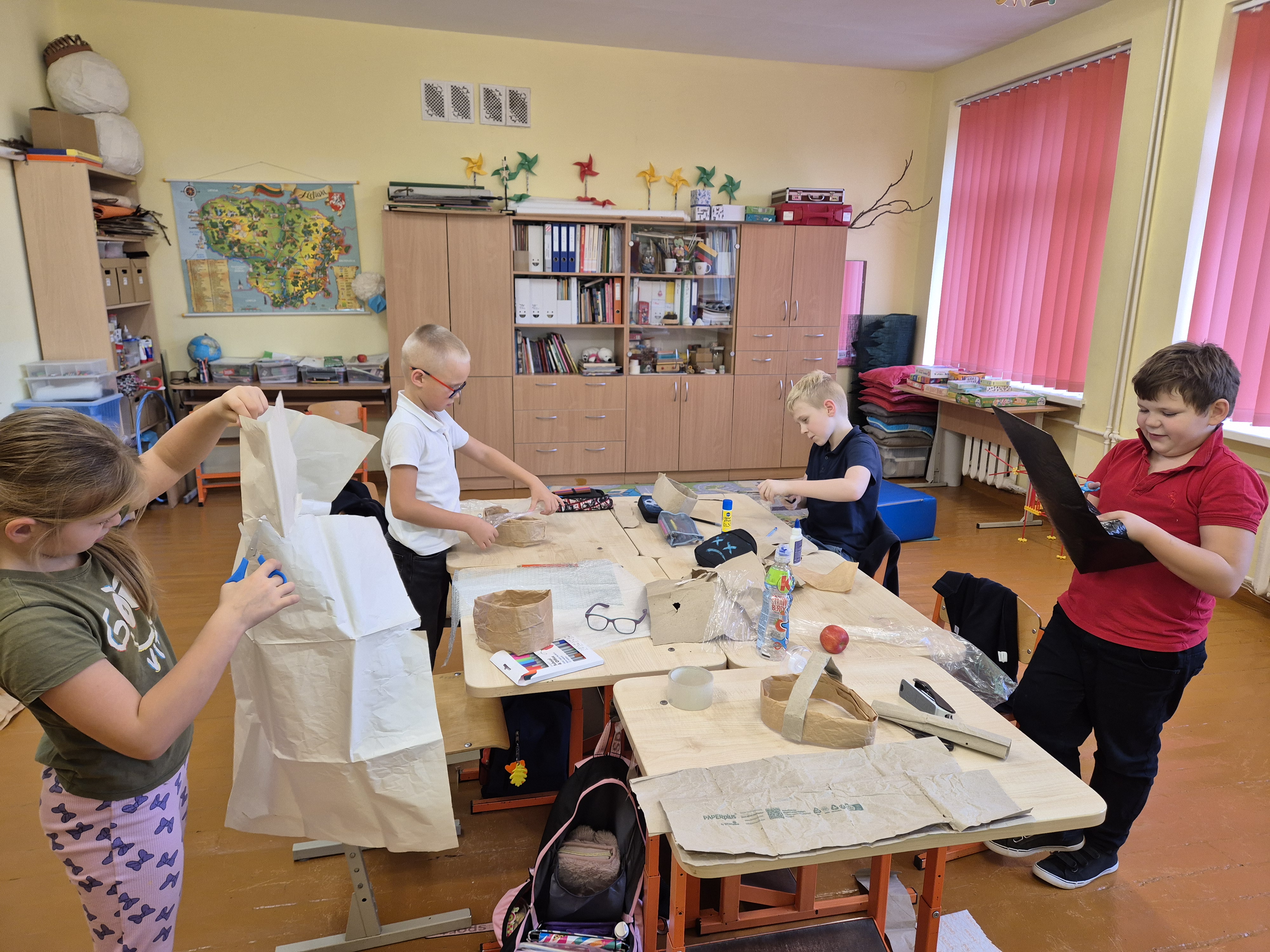 1-3 klasių mokiniai dailės ir technologijų pamokos metu dalyvavo nuotolinėje edukacijoje „Žaliasis raštingumas“. Aktyvi veikla skatino naujus mokinių įgūdžius aplinkosaugos, tvaraus gyvenimo, efektyvaus atliekų tvarkymo ir teisingo rūšiavimo srityje. Mokiniai pasigamino šių metų simbolį – drakoniuką.