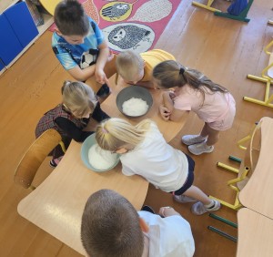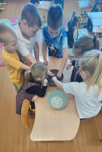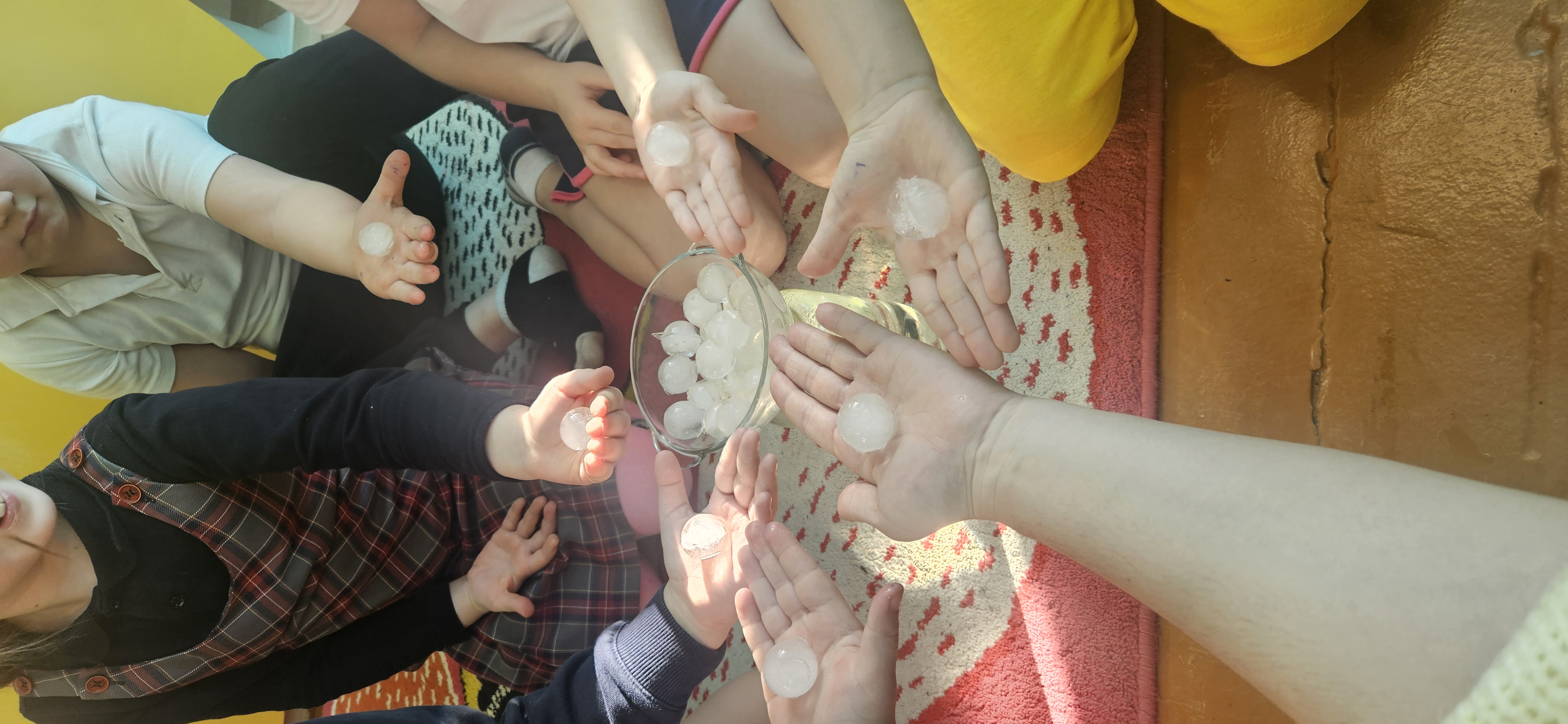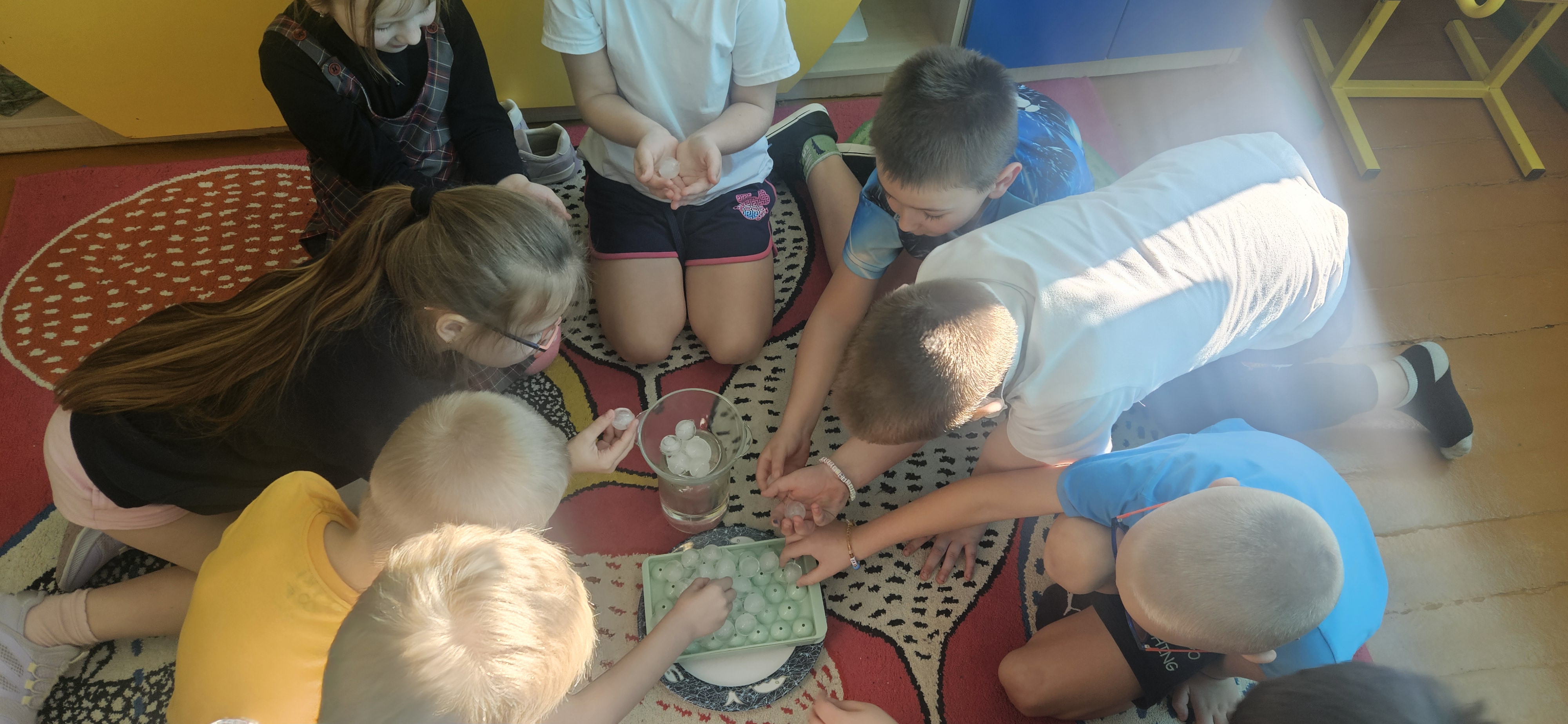 Pirmos klasės mokiniai per gamtos mokslų pamoką tyrinėjo, kaip kinta vandens būsena įvairiomis sąlygomis. Pamokos metu jie atliko tris praktinius tyrimus, kurie skatino smalsumą, stebėjimo įgūdžius ir padėjo geriau suprasti gamtos reiškinius. Pirmojo tyrimo metu mokiniai aiškinosi, kaip greitai tirpsta purus ir kietai suspaustas sniegas. Stebėdami ir lygindami rezultatus, jie nustatė, kad purus sniegas tirpsta greičiau nei suspaustas. Tai leido suprasti, kad medžiagos sandara turi įtakos tirpimo greičiui. Antrojo tyrimo metu mokiniai nagrinėjo, kaip keičiasi vandens lygis esant skirtingai oro temperatūrai. Vienas indas su vandeniu buvo pastatytas ant palangės, o kitas prie radiatoriaus. Po kurio laiko mokiniai pastebėjo, kad inde, buvusiame prie radiatoriaus, vandens sumažėjo. Jie padarė išvadą, kad dėl šilumos vanduo garuoja, todėl jo kiekis mažėja.Trečiojo tyrimo metu mokiniai, naudodami karštą vandenį ir ledukus, stebėjo, kaip susidaro lietus. Jie matė, kaip vanduo garuoja, vėliau kondensuojasi ir virsta lašeliais, primenančiais lietų. Atlikdami praktinius tyrimus mokiniai suprato, kad vanduo gali keisti savo būseną priklausomai nuo temperatūros ir aplinkos sąlygų. Jie išsiaiškino, kad šiluma skatina tirpimą ir garavimą, o atvėsus vandens garai kondensuojasi. Šie bandymai padėjo geriau suvokti vandens apytakos ciklą gamtoje.