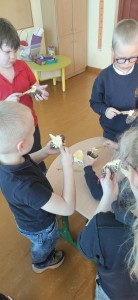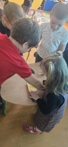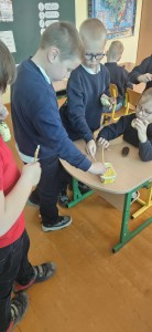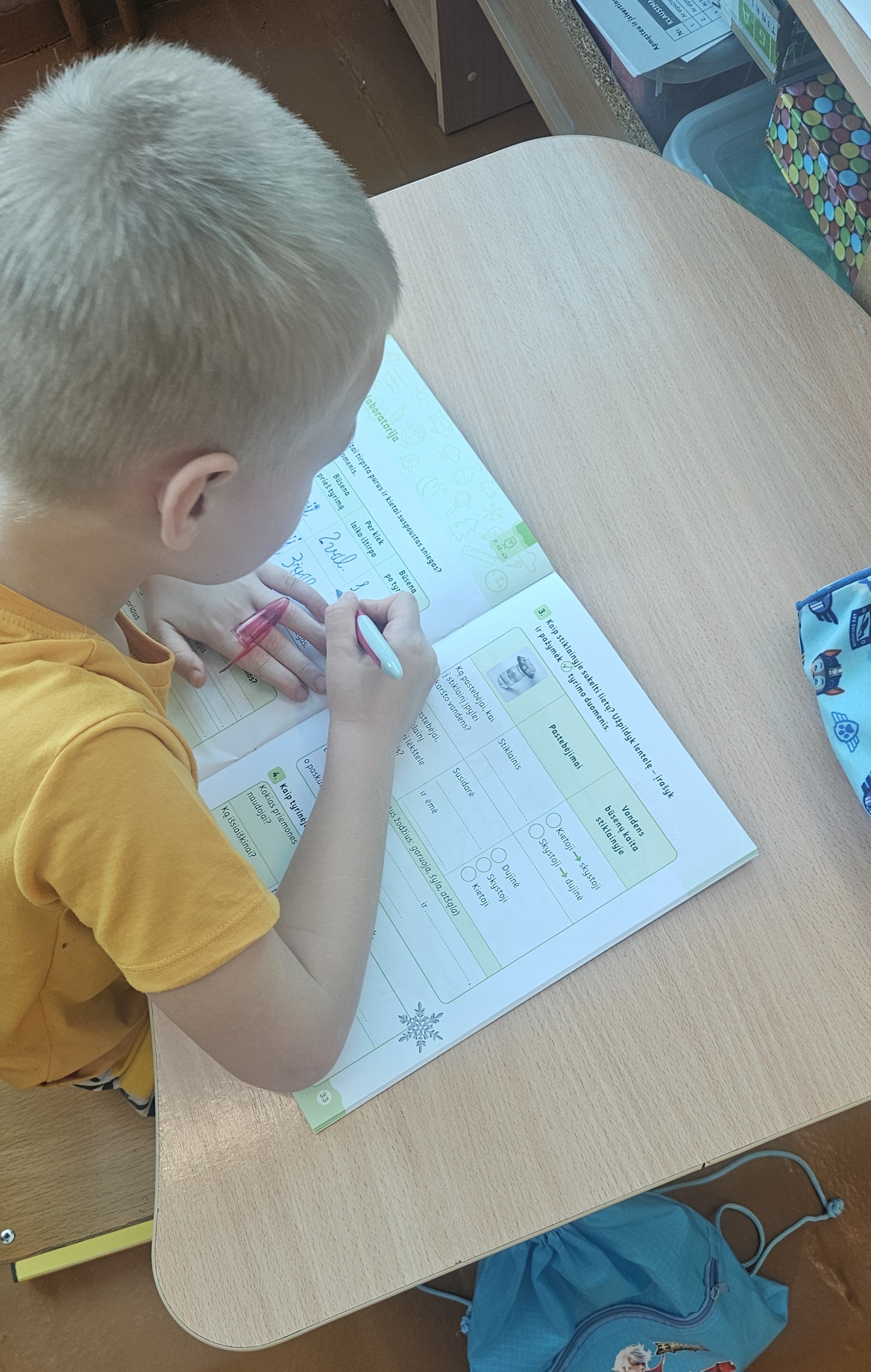 Dirbdami su vaizdine ir tekstine informacija, klausydamiesi mokytojos pasakojimo pirmokai plėtė supratimą, kokios dalys sudaro žmogaus kūną, aiškinosi, kas yra griaučiai ir kuo jie svarbūs. Vėliau mokiniai gavo užduotį – pagaminti judrų plaštakos modelį. Į užduotį vaikai kibo su didžiuliu susidomėjimu: pirmiausia rentgeno nuotraukoje ištyrinėjo, kiek kaulų sudaro kiekvieną pirštą, matavo savo delnakaulių ir pirštakaulių ilgį, skaičiavo sąnarius ir iš popieriaus bei šiaudelių stengėsi sukurti kuo tikslesnį savo plaštakos modelį. Pasirinkę tinkamas priemones ir saugiai naudodamiesi reikalingais įrankiais pirmokai užduotį atliko puikiai!