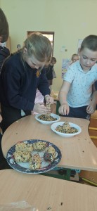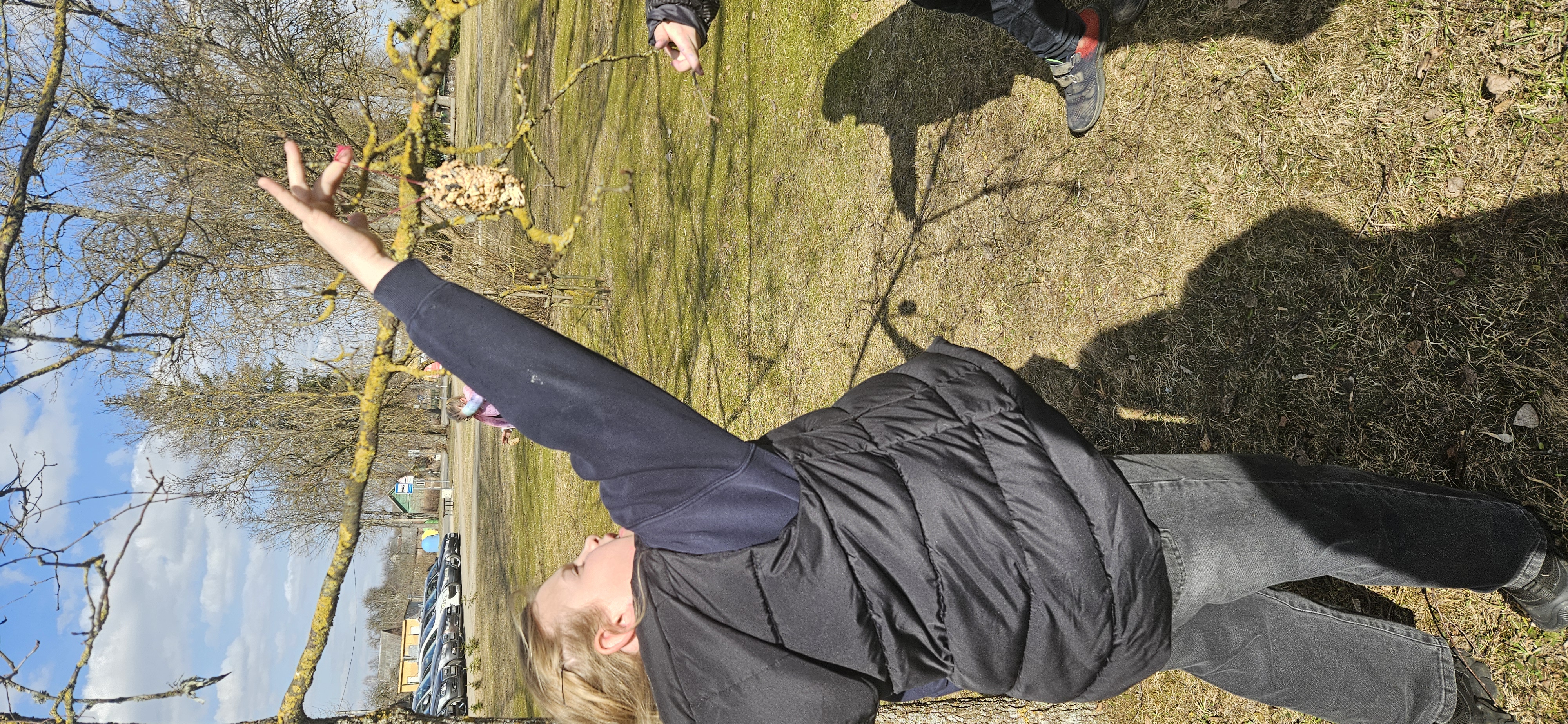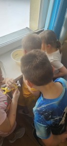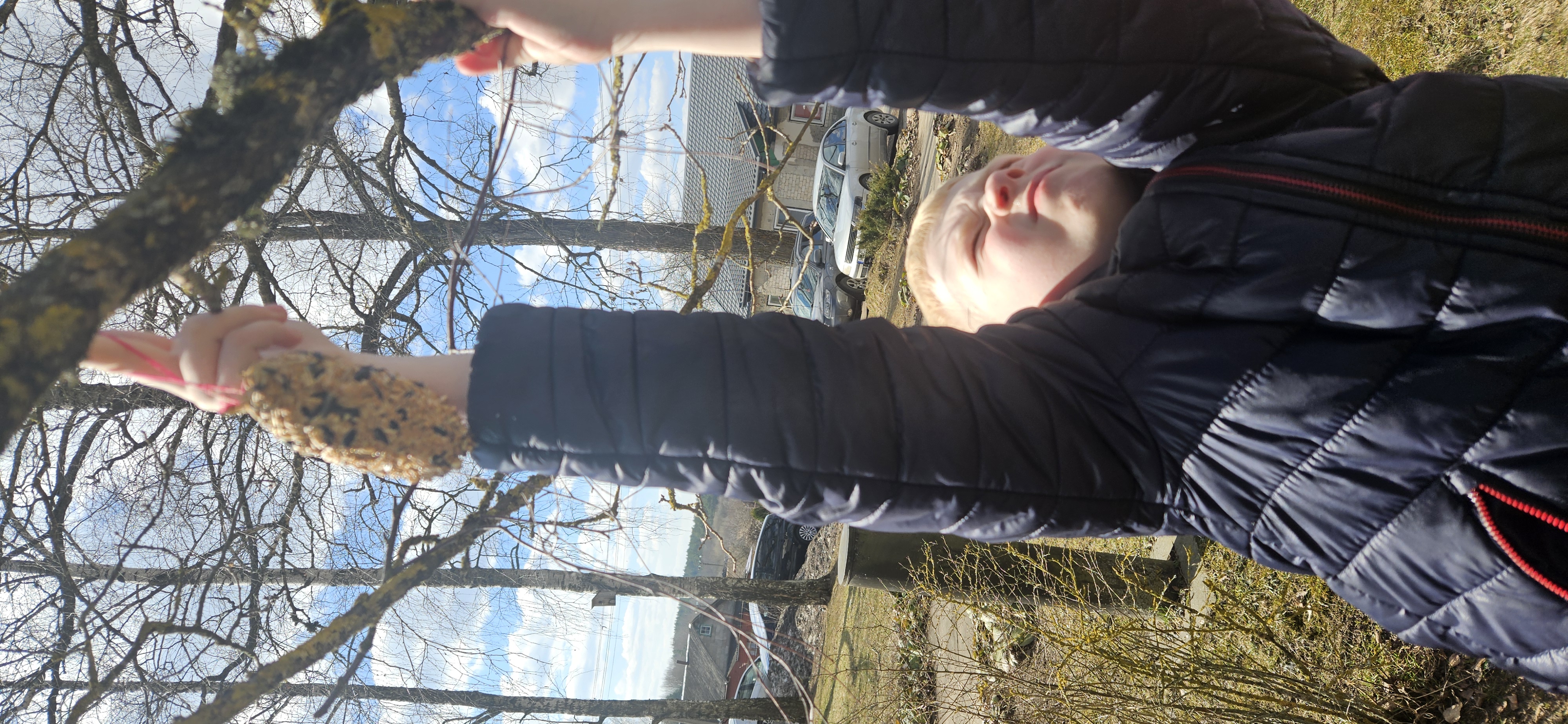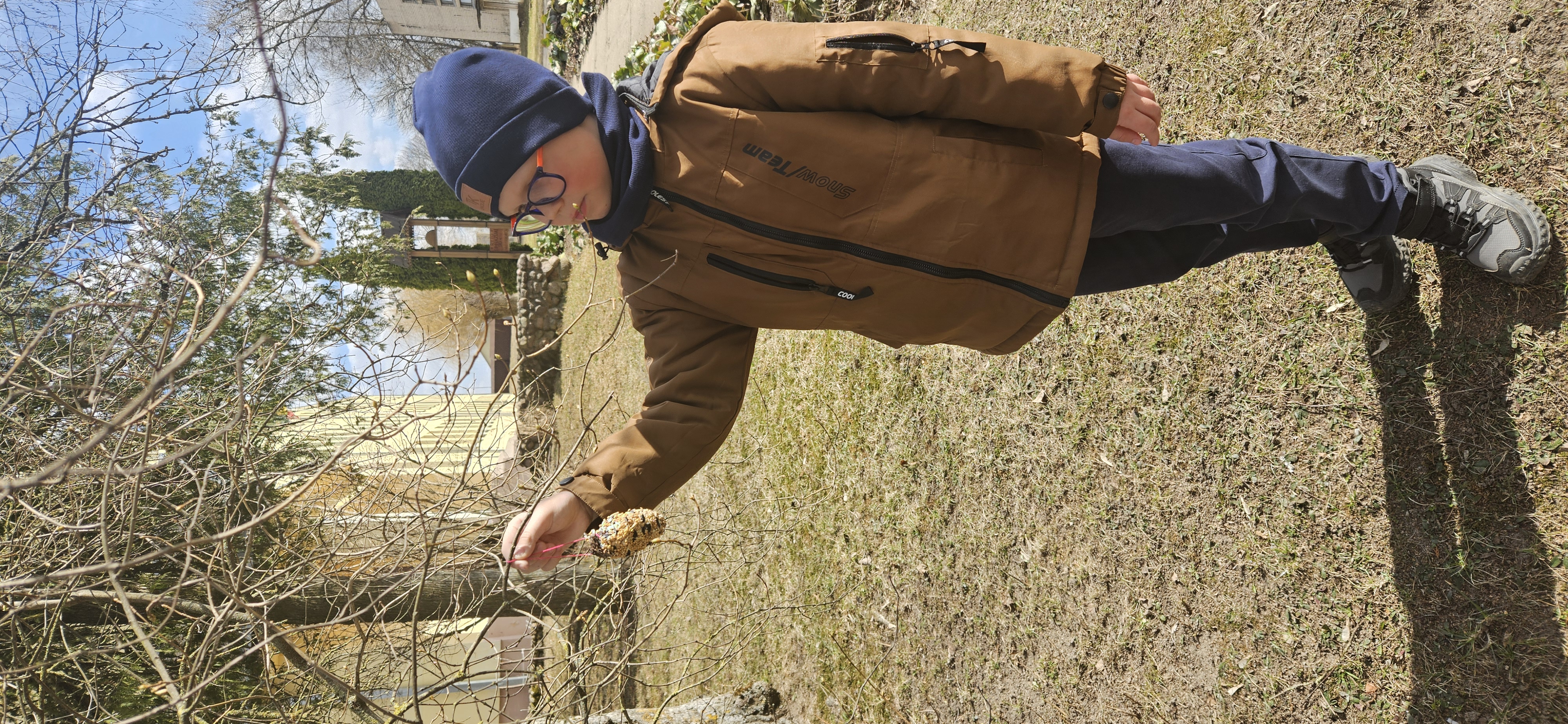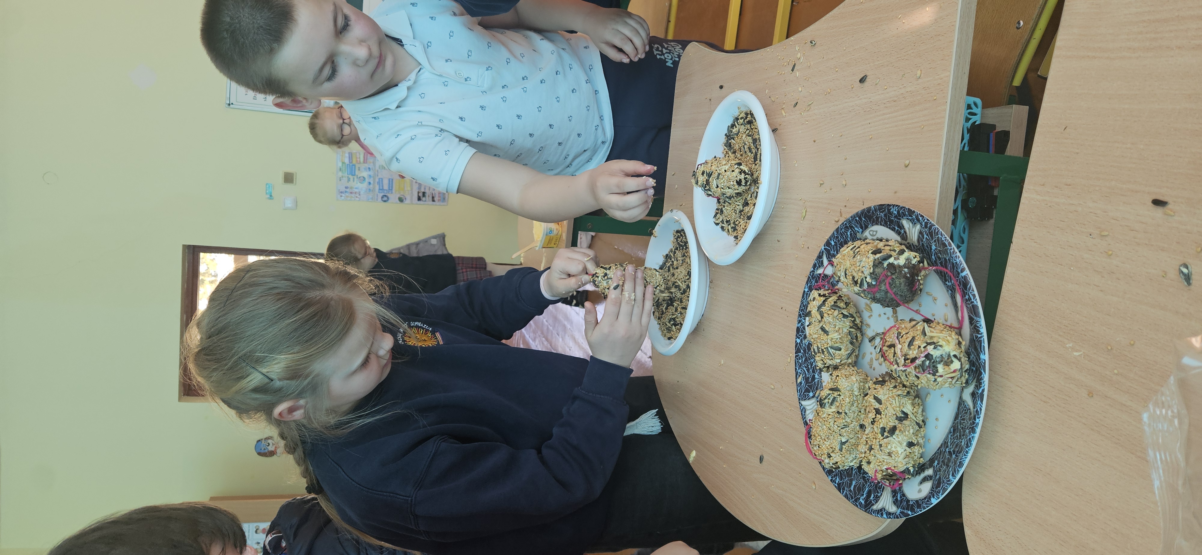 Tyrinėdami vaizdinę ir tekstinę informaciją pirmokai susipažino su Lietuvoje žiemojančiais laukiniais gyvūnais, sužinojo, kad vieni gyvūnai žiemą būna aktyvūs, o kiti įminga, išsiaiškino, kurie paukščiai išskrenda į šiltesnius kraštus, kurie lieka ir šaltąjį metų laikotarpį ištveria mūsų šalyje. Paukščius stebėti įdomu, bet pro klasės langus ne kasdien pasiseka juos pamatyti, todėl mokiniai pasiryžo sparnuočius prisivilioti lesalu. Pirmiausia vaikai pasidomėjo, koks gi lesalas paukščiams tinka, paskui pamąstė, iš ko galima pagaminti lesyklėlę, galiausiai susitarė, kas ką atliks, ir kibo į darbą. Iš eglių ir pušų kankorėžių, iš plastikinio kibirėlio ir butelio mokiniai pagamino nemažai lesyklėlių, paukščiai jose ras įvairių sėklų, taukų ir lašinukų. Tikimės, kad žvirbliai ir zylės lesyklėles pastebės ir pamėgs jose lankytis.